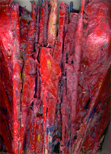 "Protean Putty 1999, bustier, paintbrushes, paper, nails, poem